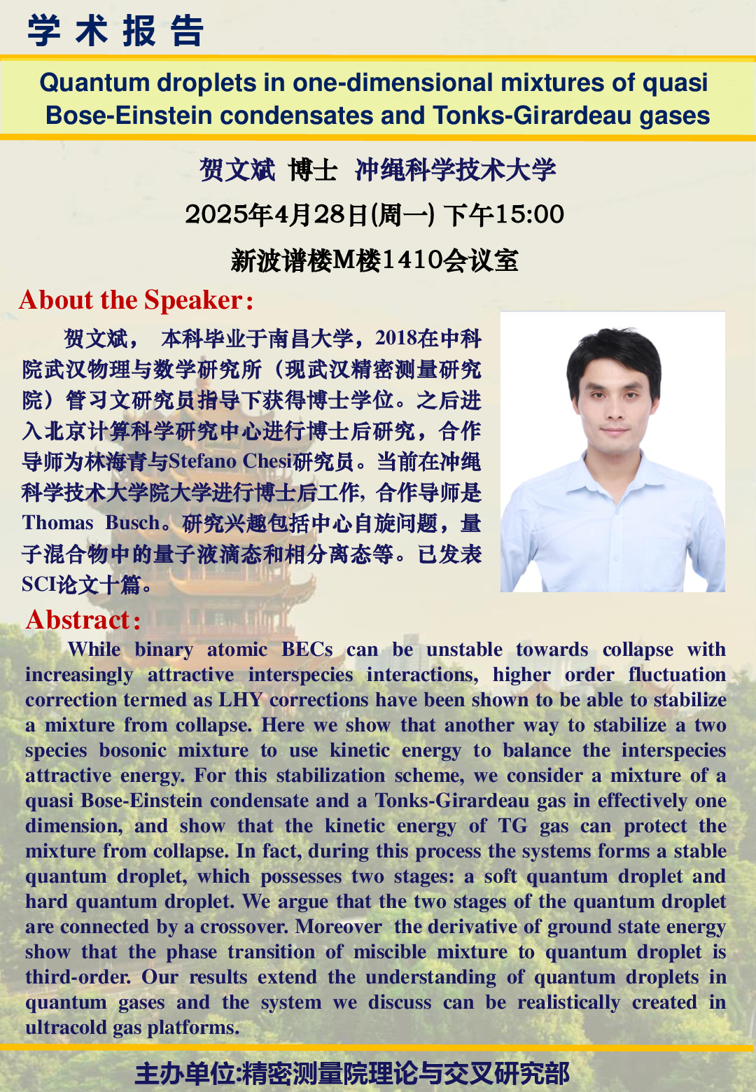 2025年4月28日尊龙凯时人生就是搏理论与交叉部学术研讨报告